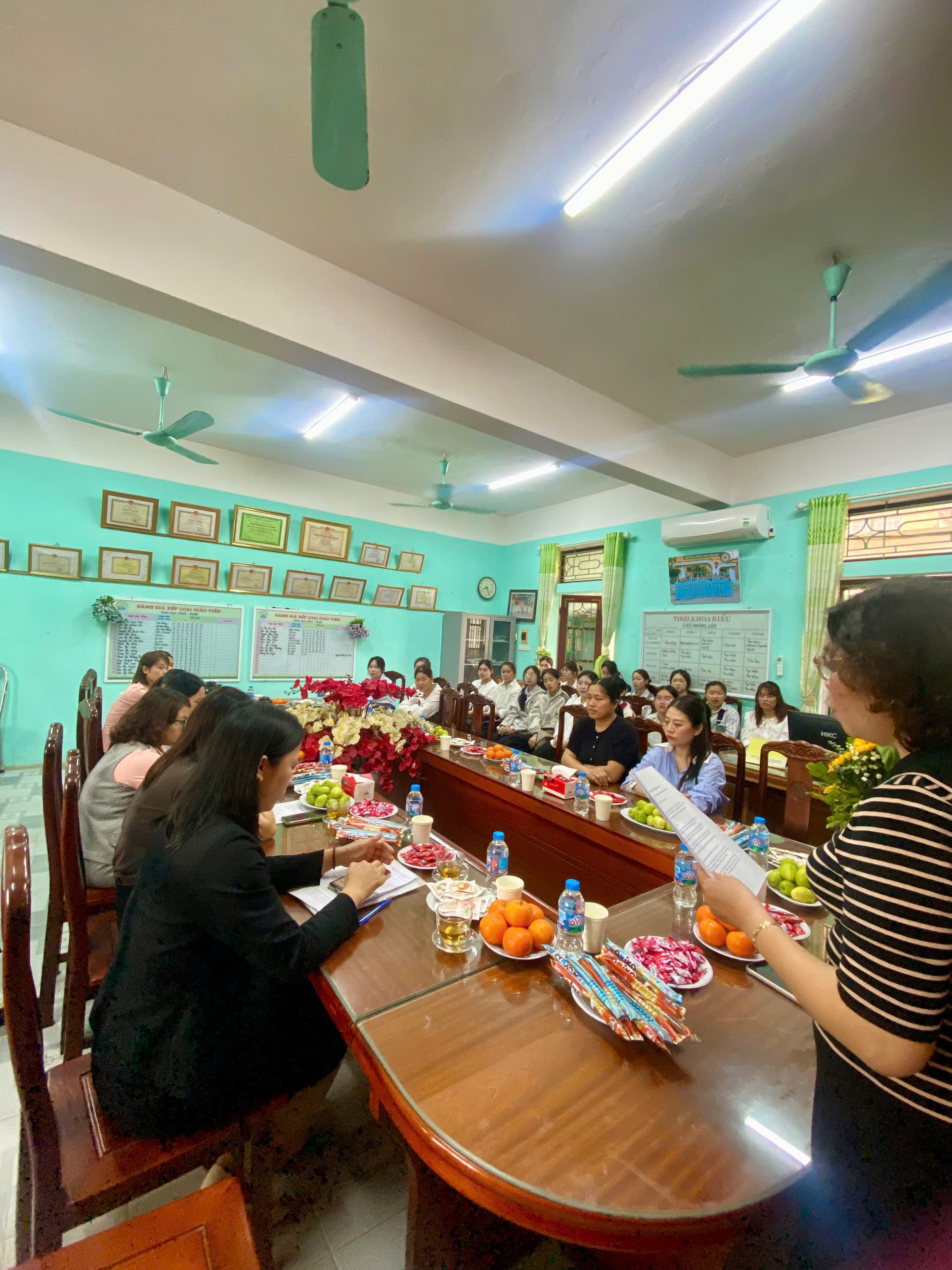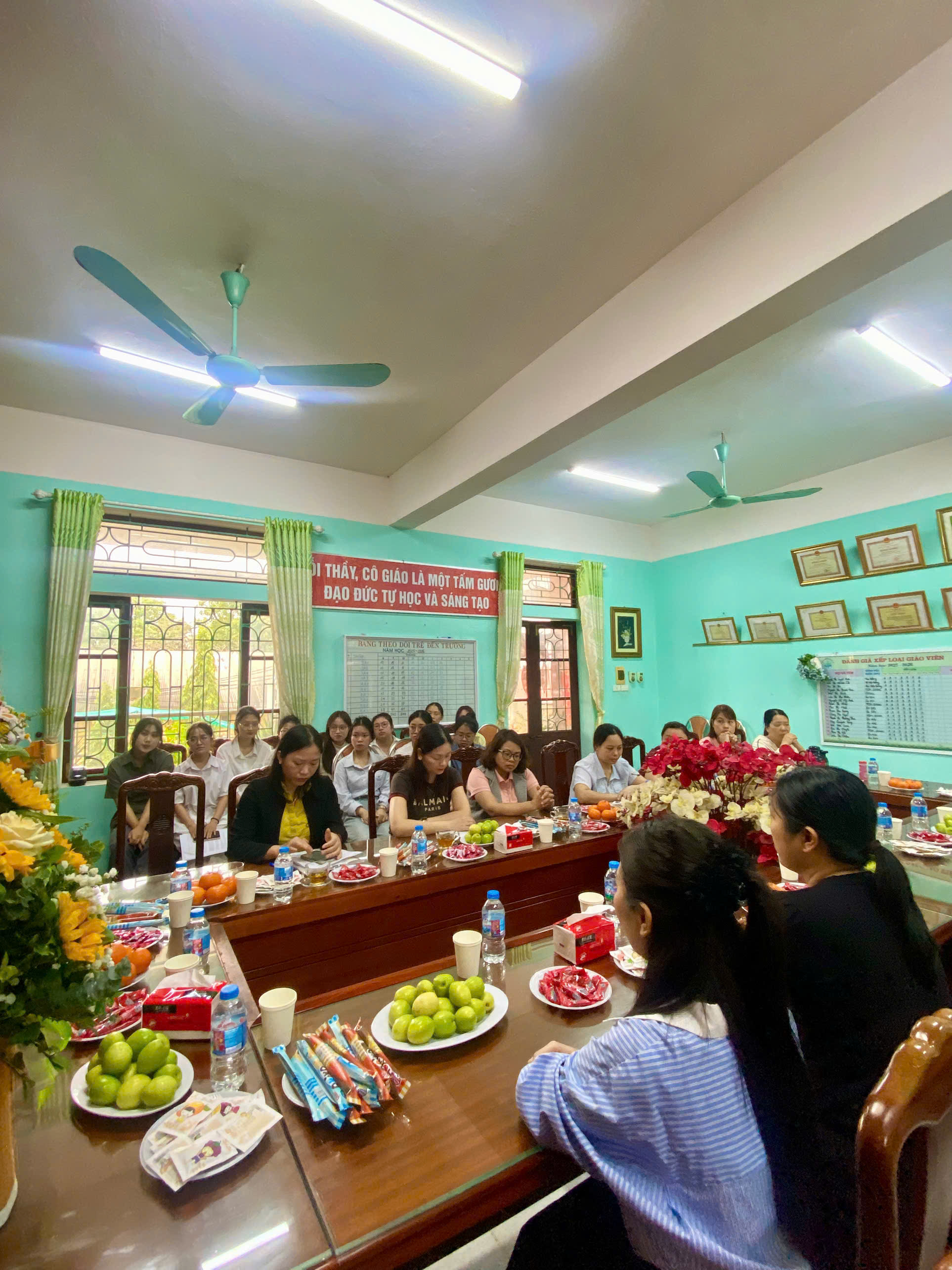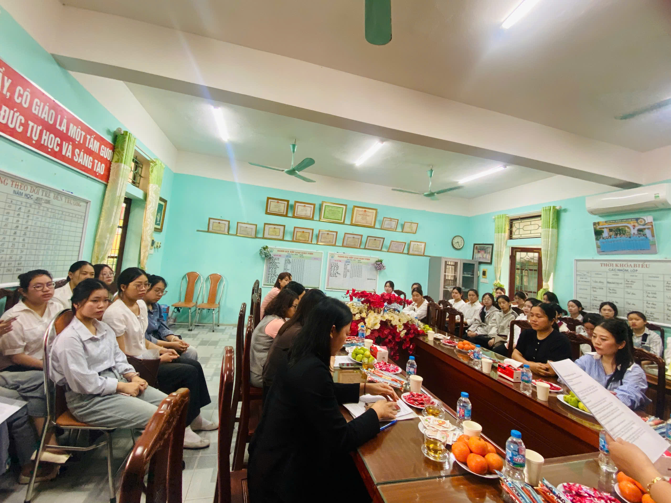 – Tại buổi gặp mặt, cô Nguyễn Thị Tuyết Anh – Hiệu trưởng nhà trường đã chia sẻ và phổ biến một số quy định, nội quy trong quá trình thực tập, đồng thời nhấn mạnh những yêu cầu về tác phong sư phạm, tinh thần trách nhiệm, sự yêu thương và tôn trọng trẻ trong môi trường giáo dục mầm non.