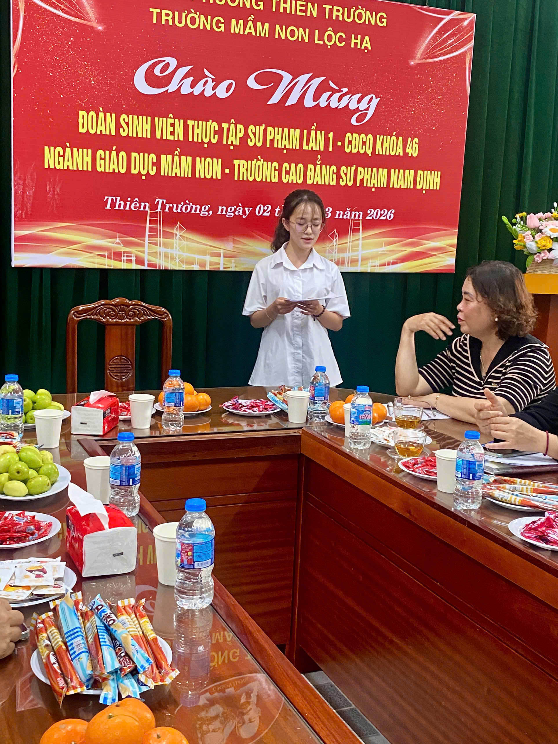 Trường Mầm non Lộc Hạ chào mừng đoàn sinh viên thực tập khóa 46 ngành GDMN – trường CĐSP Nam Định