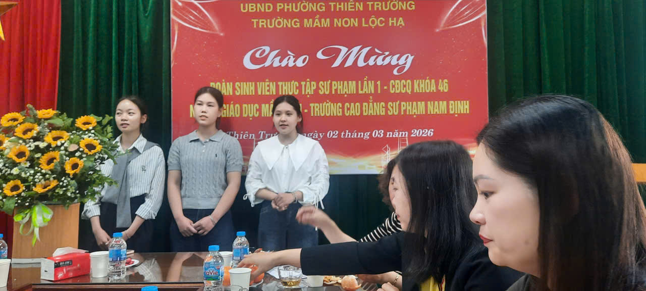 Mùa xuân là mùa của những chồi non lộc biếc, mùa của sức sống mới và những khởi đầu đầy hy vọng. Trong không khí tươi vui, ấm áp của mùa xuân ấy, Trường Mầm non Lộc Hạ, Phường Thiên Trường, Tỉnh Ninh Bình vui mừng chào đón đoàn sinh viên khóa 46, ngành Giáo dục Mầm non đến từ Trường Cao đẳng Sư phạm Nam Định về thực tập tại trường từ ngày 2/3 đến 20/3/2026.